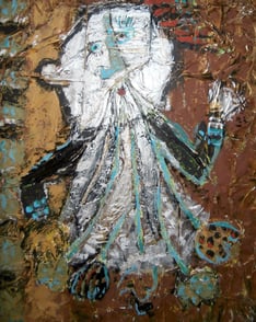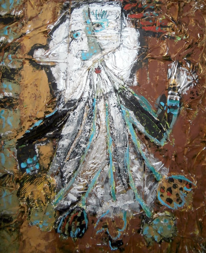 Figura con vestito a fiori - tecnica mista: foglia oro su tela 70x50