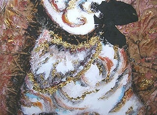 Figura con vestito a fiori - tecnica mista: foglia oro su tela 70x50