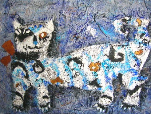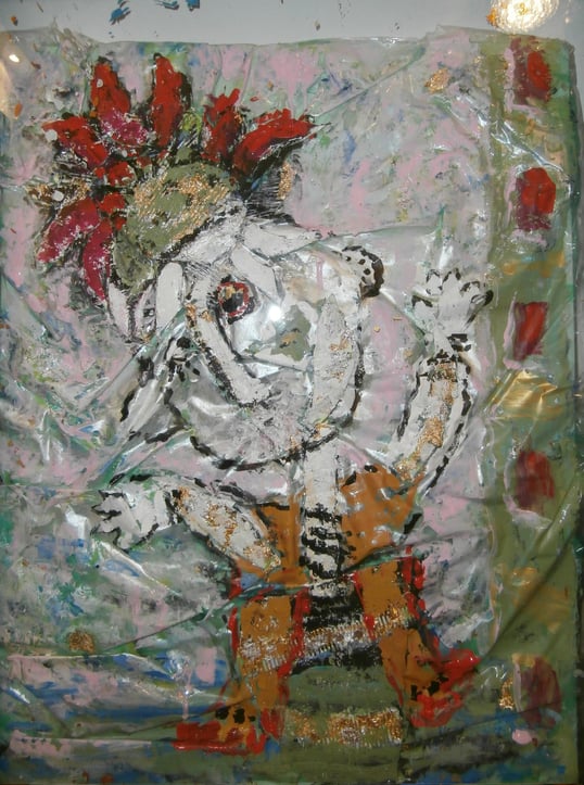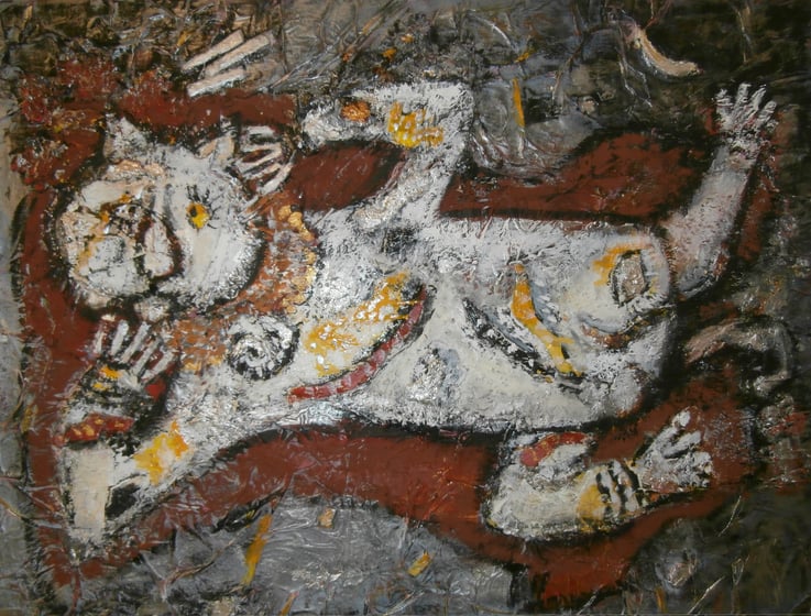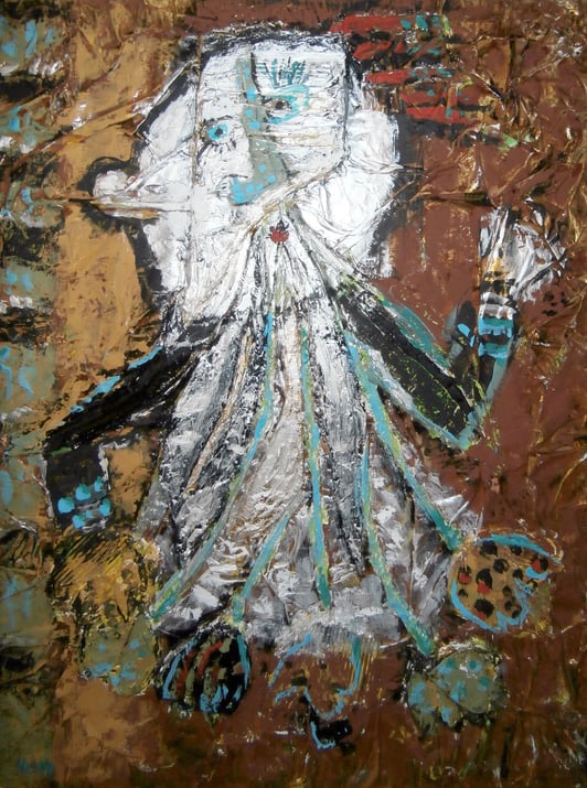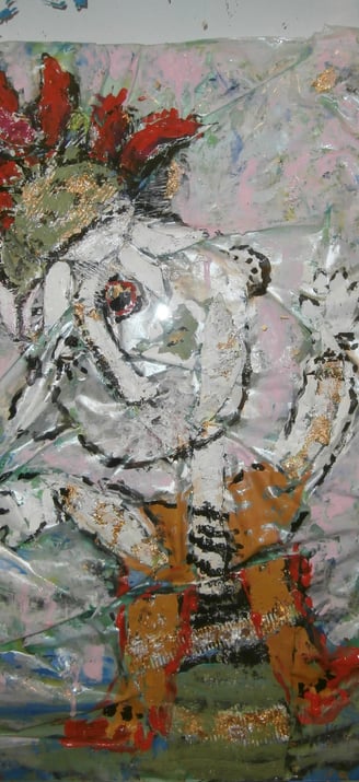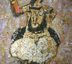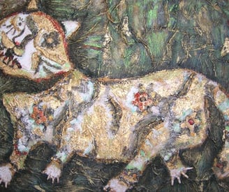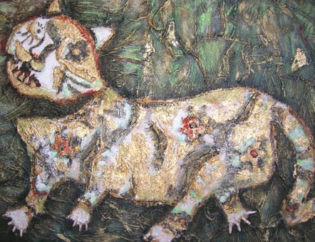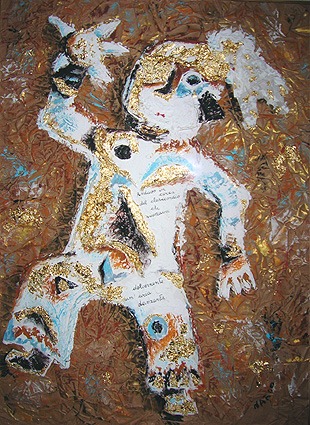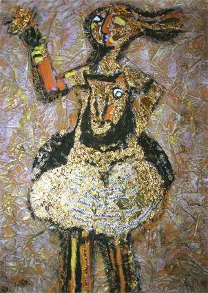 L'Amazzone - tecnica mista: foglia oro su tela 70x100